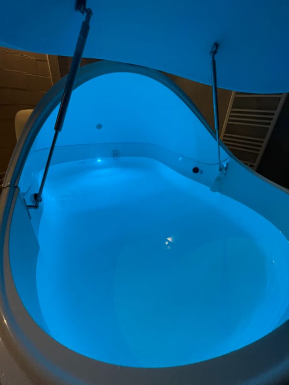 Dus we hoefden niet op elkaar te wachten, maar konden tegelijkertijd in onze eigen aparte floatcabine. Op deze manier kun je alsnog met 2 personen floaten zonder in te leveren op de ervaring.
