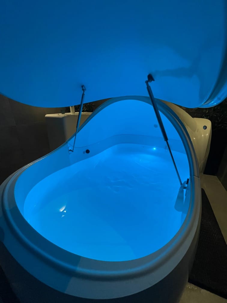 Tot slot zit er verlichting in de binnenkant van de capsule. Dus als deze dicht is, dan brand er een ontspannen blauwe lamp. Voor de beste ervaring wordt aangeraden deze uit te doen, zodat je geen prikkels ervaart.